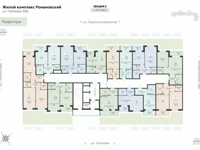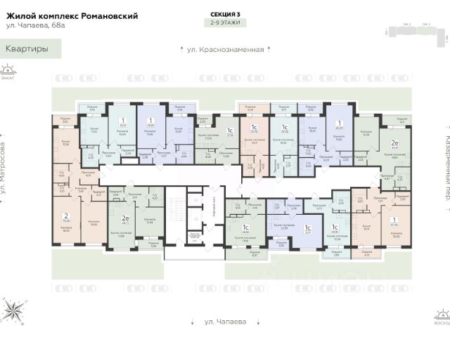 Продаётся 2-комнатная квартира в строящемся доме (Дом 1), срок сдачи: IV-кв. 2027, общей площадью 44.22 кв.м., на 2 этаже. "Романовский" - это жилой комплекс нового поколения для комфортной жизни в городе. Особое внимание здесь уделяется деталям, из которых складывается ваша идеальная жизнь. Жилой комплекс класса "комфорт плюс" расположен на улице Чапаева, в месте, где история встречается с современностью. Амбициозная архитектурная концепция, планировки нового формата, высокое качество и привлекательная локация - ваш правильный выбор в пользу гармоничной и комфортной жизни. Все лучшее - рядом. Расположение в "тихом центре" и соседство объектом культурного наследия "Водонапорная башня Романовской слободы" делает жилой комплекс "Романовский" воплощением статусности, комфорта и умиротворения. Выбирайте спокойную размеренную жизнь в шумном мегаполисе, не отказываясь от привычных занятий и увлечений. Прогулочный бульвар, стадион для спорта на свежем воздухе, супермаркеты, креативный кластер - здесь есть всё, что нужно для полноценной наполненной жизни. Retail-пространство. Дополнительный комфорт создает собственное retail-пространство ЖК "Романовский", которое легко решает повседневные задачи, предоставляя удобный доступ к разнообразным услугам. Супермаркеты и пункты выдачи, пекарни и кофейни - всё это разместится на первых этажах жилого комплекса. Пространство для жизни. Планировочные решения квартир спроектированы с учетом современных тенденций и удовлетворяют все потребности будущих жителей: просторные гостиные, функциональные кухни, уютные мастер-спальни, эргономичные ванные комнаты. Пространство каждой квартиры продумано до мелочей, чтобы предложить все лучшее для жизни и отдыха, где каждый момент будет наполнен комфортом, радостью и гармонией. эргономичные студии с гардеробными зонами в прихожейклассические однокомнатные квартиры с большими кухнями и раздельными санузламидвухкомнатные квартиры классического и евро-формата с мастер-спальнями гардеробными комнатамипросторные трёхкомнатные квартиры гостиными, мастер-спальнями и двумя санузламиАрхитектура. Панорамное остекление и богатые природные цвета фасада в сочетании с акцентными медными арками, делают комплекс благородным, захватывающим и не похожим на другие. Архитектурные решения подчеркивают - это место для особенных. Жилой комплекс "Романовский" создан с применением современных технологий строительства. Монолитный каркас обеспечит устойчивость конструкции, а вентилируемый фасад гарантирует свободную, улучшенную циркуляцию воздуха. Разнообразие форм и лаконичные детали создают исключительный стиль жизни, царящий в доме, и олицетворяют силу, динамичность, свободу и независимость. В жилом комплексе "Романовский" мы продумали и создали уютные холлы. Особое освещение, теплые оттенки используемых в отделке материалов создают комфортную атмосферу, чтобы за пределами квартиры вы чувствовали себя как дома. Пространство для отдыха, игр и спорта. Двор жилого комплекса "Романовский" - это п