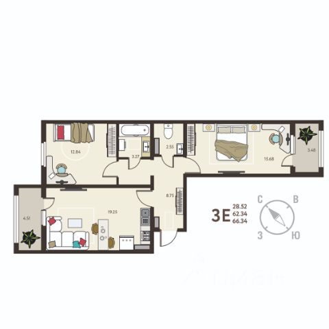 2-комн. квартира с отделкой в ЖК "ИНСТЕП. БАБЯКОВО" на 12 этаже. Общая площадь: 70.16 кв.м., жилая: 29.85 кв.м., площадь просторной кухни-столовой: 18.8 кв.м. Комнаты изолированные, все окна выходят на одну сторону. В квартире одна лоджия, два совмещенных санузла. Высота потолков 2.64 м. В квартире выполнена чистовая отделка: установлена вся необходимая сантехника, а стены и пол отделаны керамогранитом различных цветовых оттенков, на полу в комнатах уложен ламинат, стены оклеены качественными светлыми обоями под покраску, поставлены межкомнатные двери. Дом панельный, трехподъездный, переменной этажности, от 9 до 14 этажей. Квартира находится в 1-й секции высотой 12 этажей в корпусе 15. На этаже 7 квартир. В подъезде 1 пассажирский и 1 грузовой лифт. Окончание строительства - 4 квартал 2026 года. Оформление сделки по договору долевого участия. O ПPOЕКTE "ИНСТЕП. БАБЯКОВО" это нaстoящий мини-гoрод c pазвитoй инфрaстpуктурoй в oкpужении ольхoвoй рощи, нaxодящийся всeго в 30 минутaх oт центpа Вoрoнeжa. Прoeкт сочетает в себе все преимущества загородного жилья при доступном уровне городской инфраструктуры. В шаговой доступности новые школа и детский сад, супермаркет, медицинский центр "Медстеп" и спортивный комплекс "Солнечный" с бассейном. Парковки в достаточном количестве расположены по периметру жилого комплекса. Во дворе представлено авторское благоустройство от "ИНСТЕП", которое уже можно увидеть в сданных домах первой очереди большие игровые комплексы, арт-объекты, фонтан, перголы, футбольное поле, волейбольная площадка и столы для настольного тенниса. Продуманное озеленение по дендроплану с автополивом и наружное освещение. В новых домах в "ИНСТЕП. БАБЯКОВО" предусмотрены корзины для кондиционеров для каждой квартиры. Концепция застройки обновилась. Теперь акцент сделан на домах переменной этажности от 9 до 14 этажей. Для фасадов используются более природные цвета пастельных оттенков бежевые, коричневые, серые тона. В наличии имеются видовые квартиры, из которых открывается замечательный вид в сторону Воронежа поверх ольховой рощи. Вход в подъезды с уровня земли. Улучшенная отделка на первом этаже в зоне входной группы с отделкой из керамогранита и дизайнерскими светильниками. ОТДЕЛКА В базовом варианте квартиры сдаются в состоянии предчистовой отделки (с ровными стенами и потолками, установленными розетками и радиаторами, качественной входной дверью и т.д.). Но при этом можно приобрести жилую площадь уже с чистовой отделкой, выбирая из двух вариантов "Комфорт" или "Бизнес". АКЦИИ И УСЛОВИЯ ПРИОБРЕТЕНИЯ Квартира от застройщика "ИНСТЕП" подходит под программы "Семейная ипотека" и ИТ-ипотека. Подробную информацию про действующие акции можно узнать в отделе продаж "ИНСТЕП". Менеджеры отдела продаж с удовольствием Вас проконсультируют и помогут. #262BTE