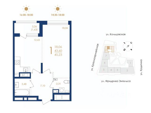 эргономичные студии с гардеробными зонами в прихожейклассические однокомнатные квартиры с большими кухнями и раздельными санузламидвухкомнатные квартиры классического и евро-формата с мастер-спальнями гардеробными комнатамипросторные трёхкомнатные квартиры гостиными, мастер-спальнями и двумя санузламиАрхитектура. Панорамное остекление и богатые природные цвета фасада в сочетании с акцентными медными арками, делают комплекс благородным, захватывающим и не похожим на другие. Архитектурные решения подчеркивают - это место для особенных.