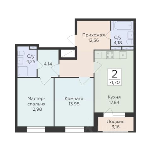 Кухня-гостиная 18 кв.м просторная, светлая, идеальна для ужинов с друзьями или уютных семейных вечеров. Из неё прямой выход на террасу, где вы можете устроить зону отдыха или мини-сад.