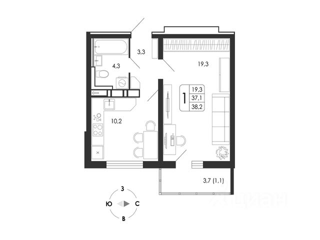 • ✅ Минимальная площадь: 16,3 м²