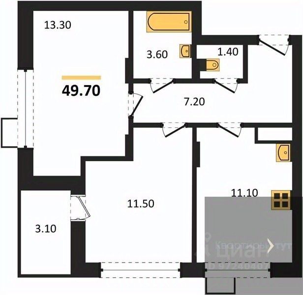 Квартира: 2 к 49,60 кв.м., 7 этаж в комплексе Ритм, 1 очередь, корп.1 (секции 3-4), сдача: 2кв. , этажей: 13, адрес Воронеж г., Содружества бул., д. 6, Застройщик: Инвестжилстрой.