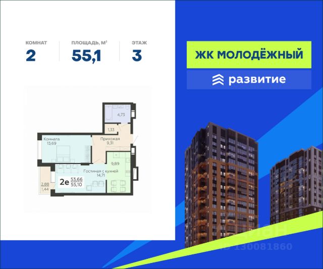 В продаже квартира площадью 51.07 кв. м с отделкой. Квартира расположена на 10 этаже 19 этажного дома, в жилом комплексе "Молодежный" (застройщик - ГК "Развитие"). ЖК "Молодежный" - лучший жилой комплекс в юго-западной части Воронежа. Семейный квартал удачно расположен в окружении рек и озёр, и при этом имеет все условия для комфортного проживания. Хорошая транспортная доступность, эргономичные планировки, уютные дворы, продуманная архитектурная концепция и вся нужная инфраструктура. Расположение Пешком: - 8 мин. до ТЦ "Ермак"; - 9 мин. до автобусной остановки "Магазин"; - 15 мин. до пристани у реки Дон. На автомобиле: - 4 мин. до шоссе на Острогожской улице; - 5 мин. до Гремяченского моста; - 20 мин. до Ленинского района; - 25 мин. до центра города. Благоустройство - просторные входные группы; - современные лифты в каждом подъезде; - прогулочные бульвары и велодорожки; - лиственные и хвойные деревья во дворе; - большие игровые комплексы для детей; - малышам - качели, песочницы, горки; - фото-зона; - силовые и кардио-тренажеры; - турники для воркаута; - футбольная площадка; - просторный наземный паркинг; - кладовые помещения для габаритных вещей; - зона ритейла: пункты выдачи, продуктовые магазины, кафе, пекарни. Окружение - 6 лесопарковых зон: Малышевский, Долгий, Шиловский и Тавровский леса, лесной массив "Жировская дача", парк "Семейный"; - квартал в окружении воды: река Дон, Воронежское водохранилище, Шиловское озеро, Березовский затон; - 3 пляжа, зоопарк "Червленый Яр", смотровая площадка на холме с видом на Дон; - 2 школы, детский сад, поликлиника, торговые центры "Ермак" и "Магнит", досуговый клуб "Шилово" - все в шаговой доступности. Купить квартиру в ипотеку в микрорайоне Шилово в городе Воронеж.