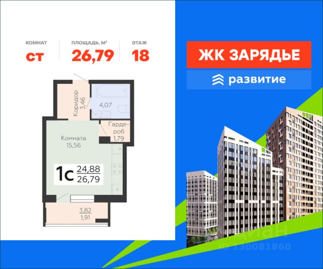 В продаже квартира площадью 23.16 кв. м с черновой отделкой. Квартира расположена на 5 этаже 18 этажного дома, в новом микрорайоне комфорт-класса "Зарядье" (Девелопер - федеральный застройщик ГК "Развитие"). Арт-квартал "Зарядье" - новый центр притяжения Коминтерновского района. Проект состоит из трех зданий переменной этажности, соединенных единым двором-парком, также он оснащен просторным подземным паркингом. Это уникальный квартал, в котором превосходная транспортная доступность, современная инфраструктура, сочетаются безупречные цветовые решения и эксклюзивные форматы квартир. Расположение Пешком: - 5 мин. до остановки "Политехнический институт"; - 7 мин. до Коминтерновского сквера; - 20 мин. до Центрального автовокзала. На автомобиле: - 5 мин. до Московского проспекта; - 10 мин. до центра города; - 15 мин. до Центрального парка; - 20 мин. до набережной у Воронежского водохранилища. Благоустройство - большой двор-парк; - функциональное зонирование территории; - сложный ландшафт, наполненный красками; - площадки для самых маленьких; - игровые комплексы для подростков; - футбольный корт; - протяженный прогулочный бульвар; - зоны отдыха среди деревьев; - беседки и скамейки по всему периметру; - workout-площадка; - дизайнерские лобби; - собственная служба консьержа; - 324 парковочных мест в подземном паркинге и на гостевой стоянке; - магазины, аптеки и кафе на первых этажах. Окружение - 4 уютных сквера: Коминтерновский, Солнечный, Политехнический, Электросигнальный; - спортивный центр BTR, Центральный стадион профсоюзов, фитнес-клуб "Олимп"; - ТРК "Арена", ТРЦ "Московский проспект", больницы, рестораны и учебные заведения Центрального района; - театр драмы имени Кольцова, Воронежский цирк, большой концертный зал, театр оперы и балета - все в пределах 15 минут.