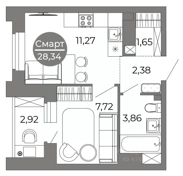 Наша квартира-студия - отличный старт для вашего ребенка или инвестиционный проект!