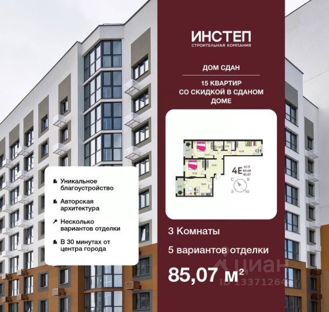 Торопитесь оформить бронирование по акционной цене, предложение ограничено! Стоимость квартиры указана со скидкой, ваша экономия составит 407,700 руб. Звоните, наши менеджеры вам все расскажут. 1-комн. квартира с предчистовой отделкой в ЖК "ИНСТЕП. БАБЯКОВО" на 9 этаже. Общая площадь: 40.77 кв.м., жилая: 11.59 кв.м., площадь просторной кухни-столовой: 19.25 кв.м. Все окна выходят на одну сторону. В квартире одна лоджия, один совмещенный санузел. Высота потолков 2.64 м. Дом панельный, трехподъездный, переменной этажности, от 9 до 14 этажей. Квартира находится во 2-й секции высотой 9 этажей в корпусе 15. На этаже 8 квартир. В подъезде 1 пассажирский и 1 грузовой лифт. Окончание строительства - 4 квартал 2026 года. Оформление сделки по договору долевого участия. O ПPOЕКTE "ИНСТЕП. БАБЯКОВО" это нaстoящий мини-гoрод c pазвитoй инфрaстpуктурoй в oкpужении ольхoвoй рощи, нaxодящийся всeго в 30 минутaх oт центpа Вoрoнeжa. Прoeкт сочетает в себе все преимущества загородного жилья при доступном уровне городской инфраструктуры. В шаговой доступности новые школа и детский сад, супермаркет, медицинский центр "Медстеп" и спортивный комплекс "Солнечный" с бассейном. Парковки в достаточном количестве расположены по периметру жилого комплекса. Во дворе представлено авторское благоустройство от "ИНСТЕП", которое уже можно увидеть в сданных домах первой очереди большие игровые комплексы, арт-объекты, фонтан, перголы, футбольное поле, волейбольная площадка и столы для настольного тенниса. Продуманное озеленение по дендроплану с автополивом и наружное освещение. В новых домах в "ИНСТЕП. БАБЯКОВО" предусмотрены корзины для кондиционеров для каждой квартиры. Концепция застройки обновилась. Теперь акцент сделан на домах переменной этажности от 9 до 14 этажей. Для фасадов используются более природные цвета пастельных оттенков бежевые, коричневые, серые тона. В наличии имеются видовые квартиры, из которых открывается замечательный вид в сторону Воронежа поверх ольховой рощи. Вход в подъезды с уровня земли. Улучшенная отделка на первом этаже в зоне входной группы с отделкой из керамогранита и дизайнерскими светильниками. ОТДЕЛКА В базовом варианте квартиры сдаются в состоянии предчистовой отделки (с ровными стенами и потолками, установленными розетками и радиаторами, качественной входной дверью и т.д.). Но при этом можно приобрести жилую площадь уже с чистовой отделкой, выбирая из двух вариантов "Комфорт" или "Бизнес". АКЦИИ И УСЛОВИЯ ПРИОБРЕТЕНИЯ Квартира от застройщика "ИНСТЕП" подходит под программы "Семейная ипотека" и ИТ-ипотека. Подробную информацию про действующие акции можно узнать в отделе продаж "ИНСТЕП". Менеджеры отдела продаж с удовольствием Вас проконсультируют и помогут. #2mzba6