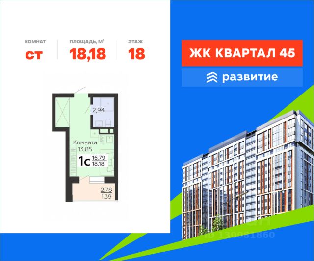 В продаже квартира площадью 40.20 кв. м с черновой отделкой. Квартира расположена на 18 этаже 18 этажного дома, в жилом комплексе комфорт-класса "Квартал 45". "Квартал 45" - это амбициозный проект будущего сердца Московского проспекта, в котором объединены лучшие градостроительные традиции, уникальная архитектура и современные технологии дизайна. Удачная локация рядом с центром, функциональные планировки, приватный парк в шаге от дома, собственный подземный паркинг на 187 машино-мест. Проект от федерального застройщика "Развитие" сочетает в себе все преимущества современного комфортного жилья. Расположение Пешком: - 3 мин. до остановки "Московский проспект"; - 5 мин. до Центрального автовокзала; - 15 мин. до уютного Коминтерновского сквера. На автомобиле: - 10 мин. до центра Воронежа; - 10 мин. до Ботанического сада; - 15 мин. до Петровской набережной. Благоустройство - приватный двор для жителей; - безопасность: нет машин, работают видеокамеры; - много зелени: деревья, кустарники, газоны; - тихие места для отдыха на свежем воздухе; - спортивный корт для командных игр; - силовые тренажеры и турники; - игровой городок для детей всех возрастов; - лужайки для пикников; - велосипедные и беговые дорожки; - длинный прогулочный бульвар; - просторный холл с авторским дизайном; - 2 лифта в каждом подъезде - грузовой и пассажирский; - удобные зоны хранения колясок и спортивного инвентаря; - кафе, продуктовые магазины, салоны красоты и другая инфраструктура на первом этаже дома. Окружение - 5 парков в пределах 10 минут: Центральный парк, Ботанический сад ВГУ, Лесопарковый участок НИИЛГиС, парк Победы, Северный лес; - спорткомплекс и стадион "Динамо", "Арена Север", Центральный стадион профсоюзов; - детская и взрослая областная больница, несколько частных клиник; - ТРЦ "Московский проспект", ТЦ "Москва", множество сетевых супермаркетов.