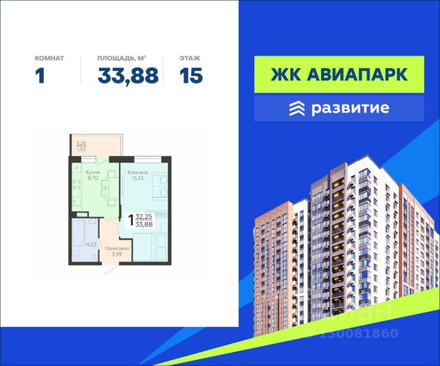 В продаже квартира площадью 33.88 кв. м с черновой отделкой. Квартира расположена на 15 этаже 15 этажного дома, в новом жилом квартале "Авиапарк". Идеальное сочетание природности и городского комфорта теперь по доступной цене! Новый жилой комплекс "Авиапарк" собрал в себе все преимущества современного жилья комфорт-класса, сочетая умиротворение загородной жизни с удобствами городской среды. Расположенный в уютном районе Воронежа с видом на местное водохранилище, комплекс имеет отличную транспортную доступность, современную архитектуру, все необходимые повседневные сервисы и большое благоустроенное пространство для жителей. "Авиапарк" - жизнь в ярком окружении! Расположение Пешком: - 10 мин. до остановки "МЧС"; - 15 мин. до Шиловского леса; - 20 мин. до поликлиники и школы. На автомобиле: - 2 мин. до трассы на Острогожской улице; - 15 мин. до Ленинского района; - 20 мин. до Петровской набережной; - 25 мин. до лесопарков "Вдохновение" и "Оптимистов". Благоустройство - уютные дворы, разделенные на зоны; - прогулочный бульвар в окружении зелени; - большое игровое пространство; - фото-зона; - городок для малышей; - спортивные конструкции для активного отдыха подростков; - беговые и велосипедные дорожки; - фитнес-зона с тренажерами; - паркинг на прилегающей территории; - несколько входных групп с авторским дизайном интерьера; - места для хранения колясок и велосипедов; - легкий доступ к инфраструктуре: магазины, кафе, салоны красоты на первых этажах домов. Окружение - леса и парки: Шиловский, Долгий и Малышевский леса, парк "Семейный"; - живописные водоемы: Шиловское озеро, река Дон, Воронежское водохранилище, Жировский затон; - 3 пляжа, зоопарк под открытым небом, торговые центры "Ласточкино", "Альянс"; - 4 спортивных учреждения, футбольный стадион, школы, детские сады, сетевые супермаркеты.