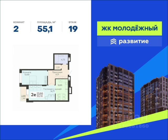 В продаже квартира площадью 75.43 кв. м с черновой отделкой. Квартира расположена на 19 этаже 19 этажного дома, в жилом комплексе "Молодежный" (застройщик - ГК "Развитие"). ЖК "Молодежный" - лучший жилой комплекс в юго-западной части Воронежа. Семейный квартал удачно расположен в окружении рек и озёр, и при этом имеет все условия для комфортного проживания. Хорошая транспортная доступность, эргономичные планировки, уютные дворы, продуманная архитектурная концепция и вся нужная инфраструктура. Расположение Пешком: - 8 мин. до ТЦ "Ермак"; - 9 мин. до автобусной остановки "Магазин"; - 15 мин. до пристани у реки Дон. На автомобиле: - 4 мин. до шоссе на Острогожской улице; - 5 мин. до Гремяченского моста; - 20 мин. до Ленинского района; - 25 мин. до центра города. Благоустройство - просторные входные группы; - современные лифты в каждом подъезде; - прогулочные бульвары и велодорожки; - лиственные и хвойные деревья во дворе; - большие игровые комплексы для детей; - малышам - качели, песочницы, горки; - фото-зона; - силовые и кардио-тренажеры; - турники для воркаута; - футбольная площадка; - просторный наземный паркинг; - кладовые помещения для габаритных вещей; - зона ритейла: пункты выдачи, продуктовые магазины, кафе, пекарни. Окружение - 6 лесопарковых зон: Малышевский, Долгий, Шиловский и Тавровский леса, лесной массив "Жировская дача", парк "Семейный"; - квартал в окружении воды: река Дон, Воронежское водохранилище, Шиловское озеро, Березовский затон; - 3 пляжа, зоопарк "Червленый Яр", смотровая площадка на холме с видом на Дон; - 2 школы, детский сад, поликлиника, торговые центры "Ермак" и "Магнит", досуговый клуб "Шилово" - все в шаговой доступности.