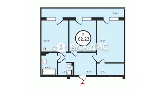 Квартира: 2 к 67,77 кв.м., 25 этаж в комплексе Галилей, 1 очередь, корп.2, сдача: 3кв. , этажей: 25, адрес Воронеж г., Кривошеина ул., д. 13/14, Застройщик: ГК Крайс.