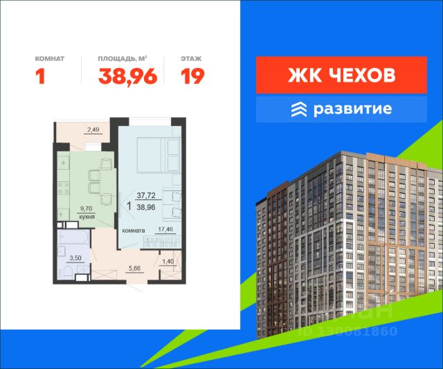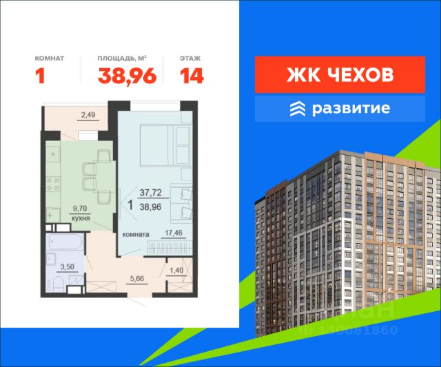 Продается квартира площадью 38.96 кв. м без отделки. Квартира находится на 14 этаже 20 этажного дома, в жилом комплексе "Чехов". Комплекс расположен по адресу - г. Воронеж, ул. Богдана Хмельницкого д. 45а. ЖК "Чехов" - новый проект ГК "Развитие" в Железнодорожном районе. Это современный жилой дом, состоящий из 4 секций с закрытым от шума собственным двором-"полумесяцем", где будет безопасно отпустить ребенка на прогулку и оставить автомобиль на ночь. Это проект для тех, кто ценит удобство и функциональность жилья, кто хочет получить максимальный комфорт за разумную цену. Расположение Пешком: - 4 мин. до автобусной остановки "Мебель Черноземья"; - 15 мин. до Суворовского затона; - 20 мин. до пляжа у Воронежского водохранилища. На автомобиле: - 2 мин. до Ленинского проспекта; - 5 мин. до ж/д станции "Отрожка"; - 15 мин. до центра города; - 20 мин. до вокзала "Воронеж-Южный". Благоустройство - большой озелененный двор; - умное зонирование; - взрослые деревья и живые цветы; - площадки для детей всех возрастов; - развивающий комплекс для самых маленьких; - зоны для фотосессий, особенно интересные подросткам; - спортивные конструкции и тренажеры; - безопасное покрытие на активных площадках; - собственный вишневый сад; - прогулочные и велосипедные дорожки; - отдельная стоянка для машин; - ритейл на первых этажах: рестораны, продуктовые лавки, службы быта. Окружение - 10 образовательных учреждений: школы, детские сады, колледжи, ВУЗы; - торгово-развлекательные центры "Максимир", "Лазурный", "Depo"; - 3 фитнес-центра, гребная база и стадион "Локомотив"; - пляж у Голубого озера, Репнинский лес, Центральный парк, Помологический сад ВГАУ и множество других парковых зон в центре города. Продается квартира в ипотеку в новостройке в районе Железнодорожный в городе Воронеж.
