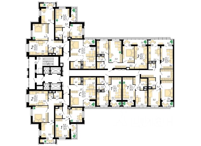 Продаётся 2-комнатная квартира в строящемся доме (Позиция 3), срок сдачи: IV-кв. 2026, общей площадью 59.7 кв.м., на 2 этаже. В исторической части Воронежа, "тихом центре", на ул. Станкевича строится жилой комплекс для людей, которые стремятся к жизни с особым комфортом. Предполагается возведение двух групп монолитных зданий, высотой от 13 до 25 этажей, с эксплуатируемой кровлей, элементами зеленой архитектуры и большим выбором планировочных решений квартир, площадью от 45 до 100 кв. м. Современный архитектурный облик домов подчеркнёт отделка фасадов керамогранитом и тонированным стеклом, первых этажей - клинкерным кирпичом. Здесь можно приобрести одно-, двух-, трёхкомнатные квартиры с панорамными окнами. В числе преимуществ - прекрасный вид на воронежское водохранилище и сады "старого" города. Планировка рассчитана таким образом, что при покупке нескольких квартир новосёлы смогут объединить их в одни апартаменты уровня "люкс" (после ввода объекта в эксплуатацию). В ЖК "Европейский" создается зона отдыха с приватными и полуприватными пространствами - сквер на окраине жилого квартала (пер. Красных партизан) с садово-парковым партером, украшенный фонтаном и малыми архитектурными формами с покрытием сетью Wi-Fi. На территории нового жилого комплекса нет промышленных предприятий. ЖК "Европейский" также максимально освобождается от машин, что позволяет сделать окружающую среду более экологичной. Индивидуальные секции жилых домов образуют закрытое пространство с большим зеленым двором, который расположится на крыше подземной стоянки. Парковки и подъездные пути к коммерческим объектам переносятся на подземный уровень. В шаговой доступности от ЖК "Европейский" находятся: административно-деловой центр "Воронеж Сити", ТЦ "Солнечный рай", бизнес-центр на Кирова, ВГАСУ, а также остановки общественного транспорта. В 5-10 минутах ходьбы расположены: рынок "1000 мелочей", административно-офисное здание "Дом Быта", Воронежский цирк и парк им. А. Л. Дурова, бизнес-центр и сквер "Романовский", Центральный рынок, Театр оперы и балета, областная универсальная научная библиотека имени И.С. Никитина, Кольцовский сквер.