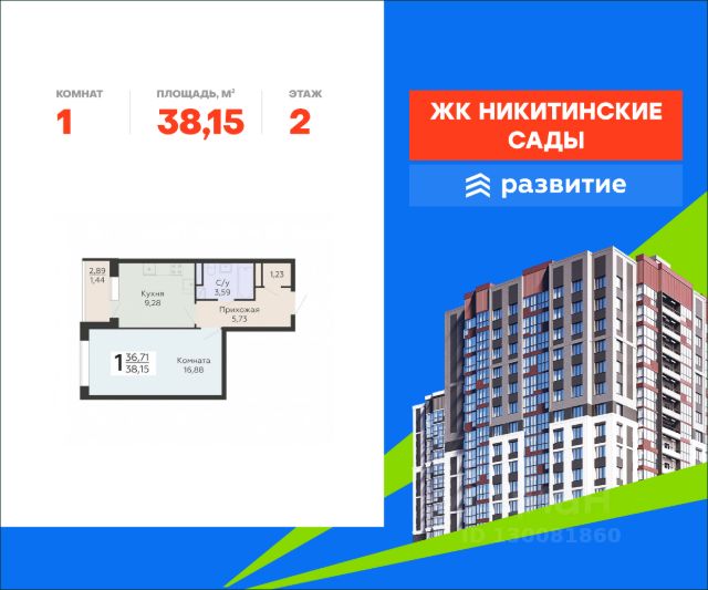 В продаже квартира площадью 38.10 кв. м с черновой отделкой. Квартира расположена на 17 этаже 18 этажного дома, в жилом комплексе комфорт-класса "Галактика 2|3". "Галактика 2|3" - это современный квартал нового поколения, где есть все городские удобства, дополненные локациями для активного отдыха, а главное -близостью к природе. Здесь вас будут ждать уютные квартиры с панорамными балконами и большие дворы с детскими площадками. Проект реализован федеральным застройщиком "Развитие" - один из крупнейших девелоперов Воронежской области, занимающий лидирующую позицию среди застройщиков по объему текущего строительства. Расположение Пешком: - 5 мин. до улицы Независимости; - 5 мин. до остановки "СКС Лада"; - 15 мин. до Северного леса; - 20 мин. до ТРК "Арена". На автомобиле: - 5 мин. до трассы на ул. Антонова-Овсеенко; - 10 мин. до Московского проспекта; - 15 мин. до Центрального парка; - 20 мин. до набережной Максима Горького. Благоустройство - двор, разделенный на функциональные зоны; - ландшафтное озеленение; - тихие уголки для отдыха; - скамьи и садовая мебель; - каменные дорожки для прогулок; - велосипедные и беговые дорожки; - большой игровой кластер для подростков; - активная площадка для малышей; - workout-тренажеры; - безопасное мягкое покрытие; - освещение в темное время суток; - большая открытая парковка; - кладовые для хранения велосипедов или лыж; - коммерческие офисы с ресторанами, магазинами и кафе. Окружение - жизнь по соседству с природой: Северный лес, озёра Бычок, Северск и Круглое, Фигурная роща, река Дон; - спортивные объекты: спорткомплекс "Арена Север", стадионы "Воронеж-Ринг", "Мир футбола", "Атлант", конный клуб "Старица", "Олимпик", ТРЦ Сити-парк "ГРАД"; - культурный отдых: музей ВДВ в парке Победы, Археологический музей, культурный центр "Северный"; - ТРЦ "Арена", "Московский проспект", школы, детские сады, супермаркеты.