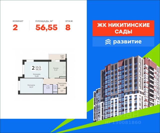 В продаже квартира площадью 33.78 кв. м с черновой отделкой. Квартира расположена на 17 этаже 20 этажного дома, в жилом комплексе комфорт-класса "Никитинские сады". "Никитинские сады" - это новое пространство, которое объединяет в себе современный внешний вид и атмосферу природного уюта. Жилой комплекс включает в себя 4 20-этажных корпуса, 1090 квартир различных планировок, множество общественных пространств для отдыха и собственную инфраструктуру. Наслаждайтесь всеми преимуществами города в окружении живописной природы! Расположение - 10 мин. пешком до остановки "улица Маршала Голикова"; - 5 мин. до бульвара Победы; - 9 мин. до ТРЦ "Арена"; - 20 мин. до ж/д станции "Березовая роща"; - 25 мин. до центра города; Благоустройство - несколько садов во дворе; - озеленение территории; - развивающие комплексы для малышей; - зоны для фотосессий; - скамьи по всему периметру; - прогулочные дорожки; - уличные тренажеры; - турники для воркаута; - мягкое покрытие на активных площадках; - оборудование из натуральных материалов; - освещение территории в вечерние часы; - просторный наземный паркинг; - кафе, магазины и бытовые сервисы на первых этажах. Окружение - природный отдых: Северный лес и лесопарк, пляж у реки Дон, озера Северск, Бычок, Круглое; - активный отдых: спорткомплекс "Арена Север", "Олимпик", футбольная школа и стадион, бассейн "Атлант", теннисный клуб "Спарта"; - культурный отдых: Музей почтового дела, КДЦ "Северный", храм Ксении Петербургской; - городской отдых: ТРЦ Сити-парк "Град" и "Московский проспект", ТРЦ "Арена", множество магазинов, кафе и студий красоты.