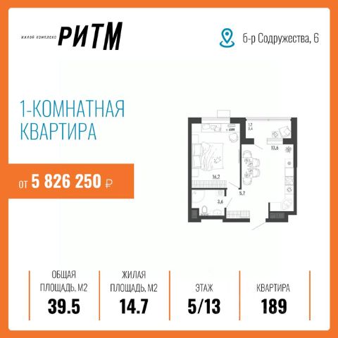 ЖК "РИТМ" — ДОСТУПНАЯ И ВЫГОДНАЯ ИНВЕСТИЦИЯ В ВАШЕ БУДУЩЕЕ Жилой комплекс "Ритм" по ул. Бульвар Содружества уч. 6 — часть масштабного проекта развития территории воронежского левобережья — микрорайона "Ключи", который займет 28,6 га недалеко от въезда в город по тамбовскому направлению. Здесь строится инновационный красивый мини-город. Он насыщен социальной и коммерческой инфраструктурой и обеспечен новейшими коммуникациями. Комплекс состоит не только из качественных домов. Решения по благоустройству стимулируют ведение активного здорового образа жизни. Продуманы возможности для взаимодействия людей, их творческой самореализации, выстраивания добрососедских связей и формирования современного приятного комьюнити. И все это на благоприятном экологическом фоне. Это действительно новый шаг в создании привлекательной среды для жизни в современном ритме! Жить, не ограничивая себя и свою семью, — разве не об этом вы мечтали? Вас ждет инновационное пространство, где вы будете вести свою насыщенную и интересную жизнь в выбранном вами ритме. Подземный паркинг на -1 этаже вместимостью на 114 машино-места, в том числе семейные парковки на два автомобиля освобождает двор от машин — там гораздо приятнее гулять с детьми или заниматься спортом. Жители смогут выходить к своему автомобилю в теплый паркинг прямо из лифта — нет беспокойства из-за погодных условий или за сохранность транспортного средства. Ваши гости тоже не останутся без парковки — на придомовой территории организовано - 131 место и вне придомовой территории - 213 мест. Для абсолютного комфорта на -1 этаже в каждой секции расположены кладовые помещение площадью от 2,10 до 5,0 кв.м., где можно хранить все что угодно — велосипеды, санки, лыжи и прочие вещи. Они больше не будут занимать весь балкон. Там гораздо приятнее пить кофе и любоваться видом из окна. ИНФРАСТРУКТУРА и ПРЕИМУЩЕСТВА Инновационное жилье в ЖК "Ритм" совсем рядом — 5 минут до Остужевского кольца, 20 минут до центра, рядом новая транспортная развязка. Легко добраться до работы и вузов, на концерт или в гости. Первый цифровой квартал в городе Дворы без машин Подземный паркинг и кладовые (в каждой секции) Сервисная Управляющая Компания (Smile) Новая инфраструктура района и коммуникаций Рядом с вами: новая уже действующая школа - 3 минут (просто перейти дорогу) новый детский сад (проект на стадии разработки, ориентировочный срок сдачи конец 2026 года) - 5 минут (просто перейти дорогу) 5 минут от центральной площади событий и прогулочных аллей стадион и спортивные площадки поликлиника (проект на стадии разработки) магазины аптеки детские площадки Продается квартира в новостройке в районе Железнодорожный в городе Воронеж.