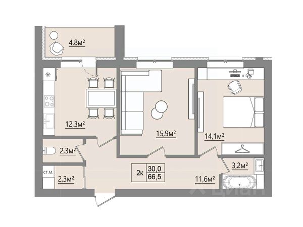 "Финский квартал" — это новый формат городского жилья, с впечатляющей территорией и продуманной философией жилья. В основе проекта — финская философия домостроения. Строгость форм, природные цвета, сочетание кирпичной кладки, стекла, штукатурки и текстуры дерева. Жилой комплекс расположен в экологически чистом районе - Яменском сельском поселении, в пяти минутах езды от города, напротив Сити-парка "Град". Месторасположение сочетает в себе близость суперрегионального объекта - Сити-парка "Град" (более 270 магазинов одежды и обуви, 30 ресторанов и кафе, 10 продовольственных магазинов). А также природных территорий - лесного массива, озер и реки Дон. ЖК "Финский квартал" — это кирпичное домостроение с монолитным плитным фундаментом под каждой секцией. Это одно из самых надежных и современных решений строительства. В каждой секции — достаточное количество кладовых помещений, которые возможно приобрести отдельно. Подъезды сквозные, со стороны двора вход выполнен на нулевом уровне, что создает безбарьерную среду. На входах — обязательные грязезащитные решетки. Качественные бесшумные лифты с большой грузоподъемностью (1000 кг). Колясочные для хранения детского транспорта. На территории жилого комплекса можно жить полноценной загородной жизнью: заниматься спортом, читать в гамаке, гулять около пруда в собственном сквере, жарить мясо на площадке для барбекю. В ЖК "Финский квартал" использована концепция "двор без машин", делающая двор максимально безопасным для детей, полностью свободным от припаркованных авто. Для автолюбителей будет реализована высокая обеспеченность парковочными местами. Для велолюбителей предусмотрены велодорожки, соединяющие объекты комплекса. В каждом дворе три зоны детская, активная и места для отдыха. В детской части запланированы современные развивающие игровые комплексы для детей различных возрастов. Активные зоны предназначены для занятия спортом, есть площадки с уличными тренажёрами и воркаут. На территории планируется как спортивные площадки в каждом дворе, так и общая мультиспортивная зона. Во дворах жители смогут поддерживать спортивную форму и заряжаться энергией на уличных тренажёрах и турниках (воркаут). Территория квартала будет огорожена по периметру. Машино-места для парковки расположены в основном пор периметру жилого комплекса. Подъезды и периметр жилых домов оборудуют системой видеонаблюдения. На подъездах будут установлены видеодомофоны, в квартирах аудиотрубки, которые при желании жители могут заменить на видеотрубку. Месторасположение сочетает в себе близость суперрегионального объекта — Сити-парка "Град", а также природных территорий. За жилым комплексом территориально закреплены социальные объекты: детский сад МКДОУ Яменский "Солнышко" на 203 места, детский сад МКДОУ Яменский "Рождественский" на 220 мест и новая школа МКОУ Яменская СОШ на 1100 мест, к которой детей возит школьный автобус. Квартира от застройщика в Рамонском районе Воронежской области.