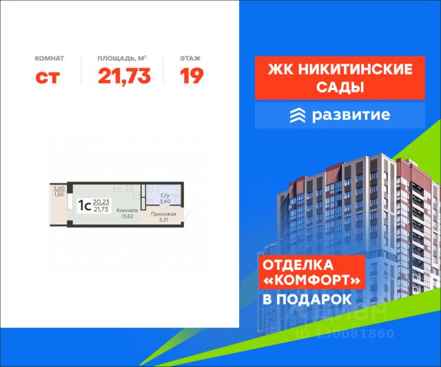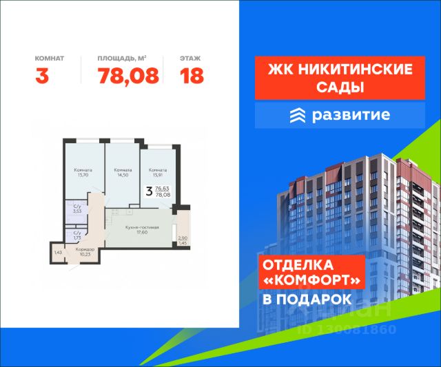 В продаже квартира площадью 53.09 кв. м с отделкой. Квартира расположена на 17 этаже 20 этажного дома, в жилом комплексе комфорт-класса "Никитинские сады". "Никитинские сады" - это новое пространство, которое объединяет в себе современный внешний вид и атмосферу природного уюта. Жилой комплекс включает в себя 4 20-этажных корпуса, 1090 квартир различных планировок, множество общественных пространств для отдыха и собственную инфраструктуру. Наслаждайтесь всеми преимуществами города в окружении живописной природы! Расположение - 10 мин. пешком до остановки "улица Маршала Голикова"; - 5 мин. до бульвара Победы; - 9 мин. до ТРЦ "Арена"; - 20 мин. до ж/д станции "Березовая роща"; - 25 мин. до центра города; Благоустройство - несколько садов во дворе; - озеленение территории; - развивающие комплексы для малышей; - зоны для фотосессий; - скамьи по всему периметру; - прогулочные дорожки; - уличные тренажеры; - турники для воркаута; - мягкое покрытие на активных площадках; - оборудование из натуральных материалов; - освещение территории в вечерние часы; - просторный наземный паркинг; - кафе, магазины и бытовые сервисы на первых этажах. Окружение - природный отдых: Северный лес и лесопарк, пляж у реки Дон, озера Северск, Бычок, Круглое; - активный отдых: спорткомплекс "Арена Север", "Олимпик", футбольная школа и стадион, бассейн "Атлант", теннисный клуб "Спарта"; - культурный отдых: Музей почтового дела, КДЦ "Северный", храм Ксении Петербургской; - городской отдых: ТРЦ Сити-парк "Град" и "Московский проспект", ТРЦ "Арена", множество магазинов, кафе и студий красоты. Купить квартиру с отделкой в районе Коминтерновский в городе Воронеж.