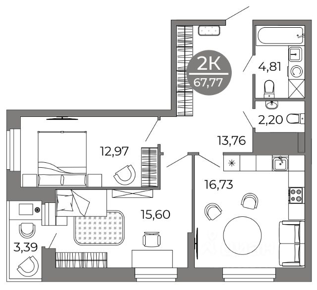 • ✅ Минимальная площадь: 20,4 м²