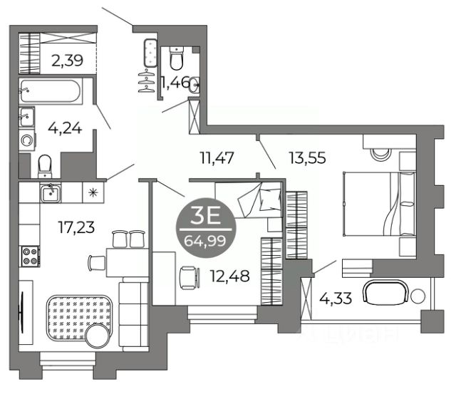 Современная планировка квартиры соответствует любому образу жизни. Здесь в первую очередь сделан акцент на удобстве жилой площади, чтобы вы с комфортом организовали свое уютное пространство для жизни, при этом не переплачивая за лишние квадратные метры. Комната 12.36, кухня 9,35, две лоджии по 3.17 - можно объединить в одну. В прихожей можно оборудовать гардеробную или кладовую, а также есть место для вместительного шкафа. Общая площадь квартиры 36,30 кв/м. Комфортный 9/18 этаж, чистые подъезды, закрытый тамбур, хорошие соседи.