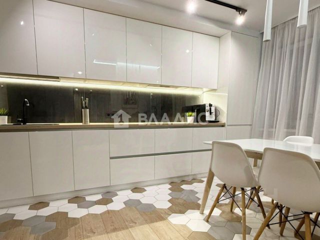Кухня: классический дизайн и функциональность, встроенная техника и обеденный стол, за которым приятно проводить время с близкими.