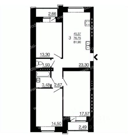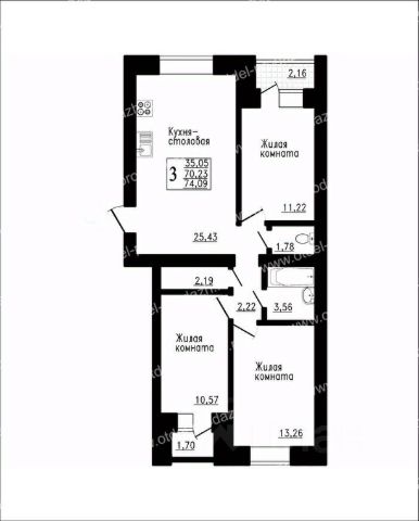 Площадь доли по документам 20.83 кв.м. Площадь комнаты ~ 14,19 кв. м. (4.3*3.3). В нижней части города. Телегина д. 6. Первый этаж.