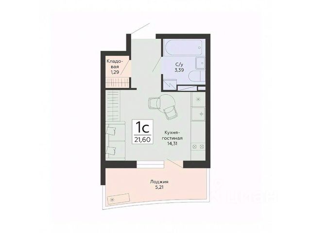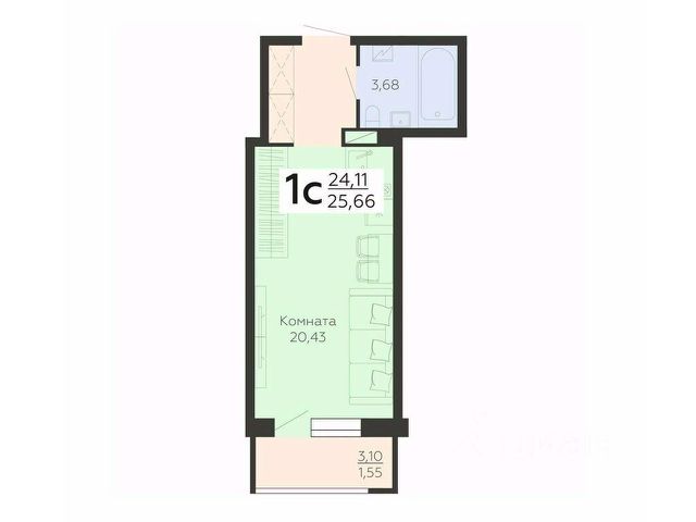 В продаже квартира площадью 23.31 кв. м с черновой отделкой. Квартира расположена на 18 этаже 19 этажного дома, в жилом комплексе "Молодежный" (застройщик - ГК "Развитие").