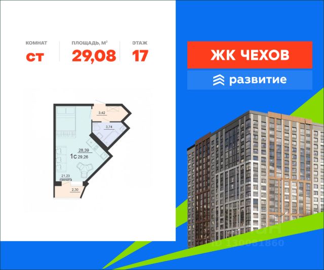 Продается квартира площадью 19.57 кв. м без отделки. Квартира находится на 20 этаже 20 этажного дома, в жилом комплексе "Чехов". Комплекс расположен по адресу - г. Воронеж, ул. Богдана Хмельницкого д. 45а. ЖК "Чехов" - новый проект ГК "Развитие" в Железнодорожном районе. Это современный жилой дом, состоящий из 4 секций с закрытым от шума собственным двором-"полумесяцем", где будет безопасно отпустить ребенка на прогулку и оставить автомобиль на ночь. Это проект для тех, кто ценит удобство и функциональность жилья, кто хочет получить максимальный комфорт за разумную цену. Расположение Пешком: - 4 мин. до автобусной остановки "Мебель Черноземья"; - 15 мин. до Суворовского затона; - 20 мин. до пляжа у Воронежского водохранилища. На автомобиле: - 2 мин. до Ленинского проспекта; - 5 мин. до ж/д станции "Отрожка"; - 15 мин. до центра города; - 20 мин. до вокзала "Воронеж-Южный". Благоустройство - большой озелененный двор; - умное зонирование; - взрослые деревья и живые цветы; - площадки для детей всех возрастов; - развивающий комплекс для самых маленьких; - зоны для фотосессий, особенно интересные подросткам; - спортивные конструкции и тренажеры; - безопасное покрытие на активных площадках; - собственный вишневый сад; - прогулочные и велосипедные дорожки; - отдельная стоянка для машин; - ритейл на первых этажах: рестораны, продуктовые лавки, службы быта. Окружение - 10 образовательных учреждений: школы, детские сады, колледжи, ВУЗы; - торгово-развлекательные центры "Максимир", "Лазурный", "Depo"; - 3 фитнес-центра, гребная база и стадион "Локомотив"; - пляж у Голубого озера, Репнинский лес, Центральный парк, Помологический сад ВГАУ и множество других парковых зон в центре города.