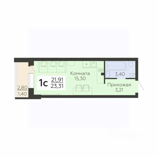 В продаже квартира площадью 23.31 кв. м с черновой отделкой. Квартира расположена на 14 этаже 19 этажного дома, в жилом комплексе "Молодежный" (Федеральный застройщик - ГК "Развитие"). ЖК "Молодежный" - лучший жилой комплекс в юго-западной части Воронежа. Семейный квартал удачно расположен в окружении рек и озёр, и при этом имеет все условия для комфортного проживания. Хорошая транспортная доступность, эргономичные планировки, уютные дворы, продуманная архитектурная концепция и вся нужная инфраструктура. Расположение Пешком: - 8 мин. до ТЦ "Ермак"; - 9 мин. до автобусной остановки "Магазин"; - 15 мин. до пристани у реки Дон. На автомобиле: - 4 мин. до шоссе на Острогожской улице; - 5 мин. до Гремяченского моста; - 20 мин. до Ленинского района; - 25 мин. до центра города. Благоустройство - просторные входные группы; - современные лифты в каждом подъезде; - прогулочные бульвары и велодорожки; - лиственные и хвойные деревья во дворе; - большие игровые комплексы для детей; - малышам - качели, песочницы, горки; - фото-зона; - силовые и кардио-тренажеры; - турники для воркаута; - футбольная площадка; - просторный наземный паркинг; - кладовые помещения для габаритных вещей; - зона ритейла: пункты выдачи, продуктовые магазины, кафе, пекарни. Окружение - 6 лесопарковых зон: Малышевский, Долгий, Шиловский и Тавровский леса, лесной массив "Жировская дача", парк "Семейный"; - квартал в окружении воды: река Дон, Воронежское водохранилище, Шиловское озеро, Березовский затон; - 3 пляжа, зоопарк "Червленый Яр", смотровая площадка на холме с видом на Дон; - 2 школы, детский сад, поликлиника, торговые центры "Ермак" и "Магнит", досуговый клуб "Шилово" - все в шаговой доступности.