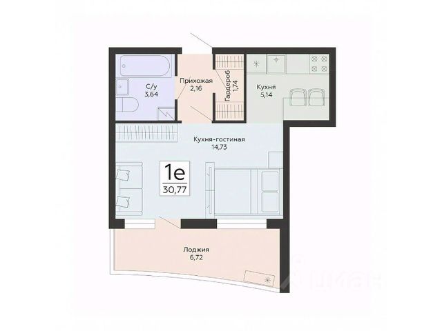 Продам уникальную студию с террасой в новом доме общей площадью 31,8 м2 + 15,47 м2 террасы в личном пользовании!