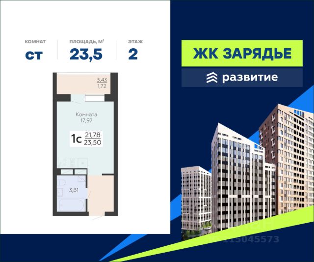 В продаже квартира площадью 21.73 кв. м с черновой отделкой. Квартира расположена на 10 этаже 20 этажного дома, в жилом комплексе комфорт-класса "Никитинские сады". "Никитинские сады" - это новое пространство, которое объединяет в себе современный внешний вид и атмосферу природного уюта. Жилой комплекс включает в себя 4 20-этажных корпуса, 1090 квартир различных планировок, множество общественных пространств для отдыха и собственную инфраструктуру. Наслаждайтесь всеми преимуществами города в окружении живописной природы! Расположение - 10 мин. пешком до остановки "улица Маршала Голикова"; - 5 мин. до бульвара Победы; - 9 мин. до ТРЦ "Арена"; - 20 мин. до ж/д станции "Березовая роща"; - 25 мин. до центра города; Благоустройство - несколько садов во дворе; - озеленение территории; - развивающие комплексы для малышей; - зоны для фотосессий; - скамьи по всему периметру; - прогулочные дорожки; - уличные тренажеры; - турники для воркаута; - мягкое покрытие на активных площадках; - оборудование из натуральных материалов; - освещение территории в вечерние часы; - просторный наземный паркинг; - кафе, магазины и бытовые сервисы на первых этажах. Окружение - природный отдых: Северный лес и лесопарк, пляж у реки Дон, озера Северск, Бычок, Круглое; - активный отдых: спорткомплекс "Арена Север", "Олимпик", футбольная школа и стадион, бассейн "Атлант", теннисный клуб "Спарта"; - культурный отдых: Музей почтового дела, КДЦ "Северный", храм Ксении Петербургской; - городской отдых: ТРЦ Сити-парк "Град" и "Московский проспект", ТРЦ "Арена", множество магазинов, кафе и студий красоты.