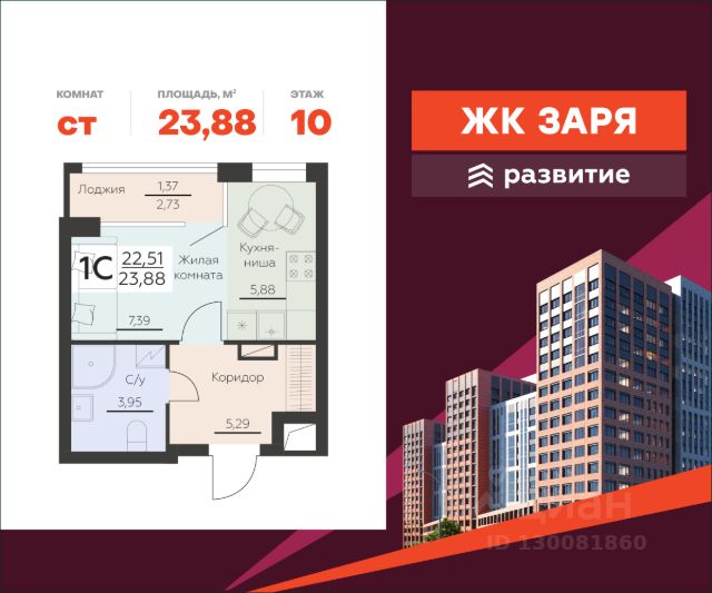 Продается квартира площадью 31.25 кв. м на 10 этаже 14 этажного дома, в жилом комплексе повышенного комфорта "Дом Архитектора". Комплекс находится по адресу г. Воронеж, Ленинский пр-т, 108а. "Дом Архитектора" расположен в самом сердце левого берега. Новый жилой комплекс от федерального девелопера "Развитие" сочетает удобство, безопасность, функциональность жилых и общественных пространств с детальной проработкой интерьеров и планировочных решений. Красота снаружи и изнутри, легкость и оторванность от проблем и суеты - вот основная концепция "Дома Архитектора". Расположение Пешком: - 1 минута до остановки "улица Серова"; - 10 минут до Левобережного автовокзала; - 10 минут до пристани у Воронежского водохранилища; - 15 минут до исторического центра. На автомобиле: - 7 минут до Центрального района; - 9 минут до Петровской набережной; - 10 минут до проспекта Революции; - 12 минут до ж/д станции "Придача" (вокзал "Воронеж-Южный"). Благоустройство - безбарьерная среда; - светопрозрачная входная группа; - современные системы видеонаблюдения и IP-домофоны; - 2 лифта в каждом подъезде; - авторская концепция благоустройства; - мощеные прогулочные тропинки из экологичных материалов; - декоративная рельефная плитка; - яркие качели, песочницы и горки для малышей; - спортивные площадки отдельно от тихих зон; - деревья и кустарники по всему периметру общественных зон; - уютные скамьи для отдыха и общения; - подземный паркинг; - сервисы повседневной инфраструктуры. Окружение - 5 парковых зон: Свадебный сквер у набережной, бульвар на Ленинском проспекте, парк и пляж "Алые Паруса", парк Патриотов, Чернавская Дамба; - множество музеев и достопримечательностей, в числе которых Музей-диорама и Благовещенский собор; - стадион "Металлист", школа, лицей, несколько детских садов и секций дополнительного образования; - сетевые гипермаркеты, торговые центры, рестораны и кофейни в шаговой доступности.