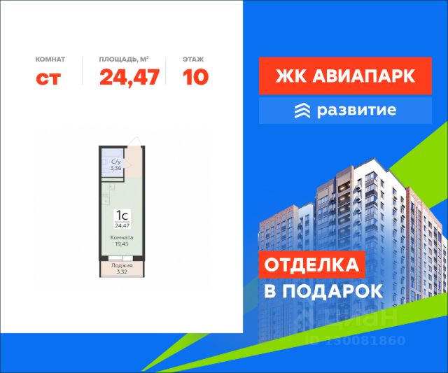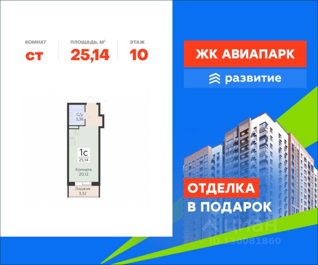 В продаже квартира площадью 23.09 кв. м с черновой отделкой. Квартира расположена на 10 этаже 18 этажного дома, в новом жилом квартале "Авиапарк". Идеальное сочетание природности и городского комфорта теперь по доступной цене! Новый жилой комплекс "Авиапарк" собрал в себе все преимущества современного жилья комфорт-класса, сочетая умиротворение загородной жизни с удобствами городской среды. Расположенный в уютном районе Воронежа с видом на местное водохранилище, комплекс имеет отличную транспортную доступность, современную архитектуру, все необходимые повседневные сервисы и большое благоустроенное пространство для жителей. "Авиапарк" - жизнь в ярком окружении! Расположение Пешком: - 10 мин. до остановки "МЧС"; - 15 мин. до Шиловского леса; - 20 мин. до поликлиники и школы. На автомобиле: - 2 мин. до трассы на Острогожской улице; - 15 мин. до Ленинского района; - 20 мин. до Петровской набережной; - 25 мин. до лесопарков "Вдохновение" и "Оптимистов". Благоустройство - уютные дворы, разделенные на зоны; - прогулочный бульвар в окружении зелени; - большое игровое пространство; - фото-зона; - городок для малышей; - спортивные конструкции для активного отдыха подростков; - беговые и велосипедные дорожки; - фитнес-зона с тренажерами; - паркинг на прилегающей территории; - несколько входных групп с авторским дизайном интерьера; - места для хранения колясок и велосипедов; - легкий доступ к инфраструктуре: магазины, кафе, салоны красоты на первых этажах домов. Окружение - леса и парки: Шиловский, Долгий и Малышевский леса, парк "Семейный"; - живописные водоемы: Шиловское озеро, река Дон, Воронежское водохранилище, Жировский затон; - 3 пляжа, зоопарк под открытым небом, торговые центры "Ласточкино", "Альянс"; - 4 спортивных учреждения, футбольный стадион, школы, детские сады, сетевые супермаркеты.
