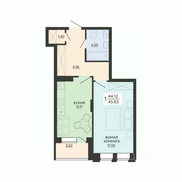 Продаётся 1-комнатная квартира в строящемся доме (1 этап), срок сдачи: IV-кв. 2029, общей площадью 44.08 кв.м., на 2 этаже. Новый жилой комплекс от группы компаний "Развитие" расположен по адресу: г. Воронеж, по ул. Туполева.