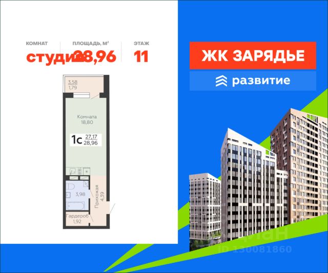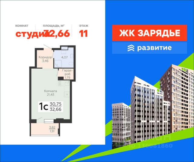 • ✓ В базе Циан 66 квартир-студий на 11 этаже в районе Коминтерновский в городе Воронеж