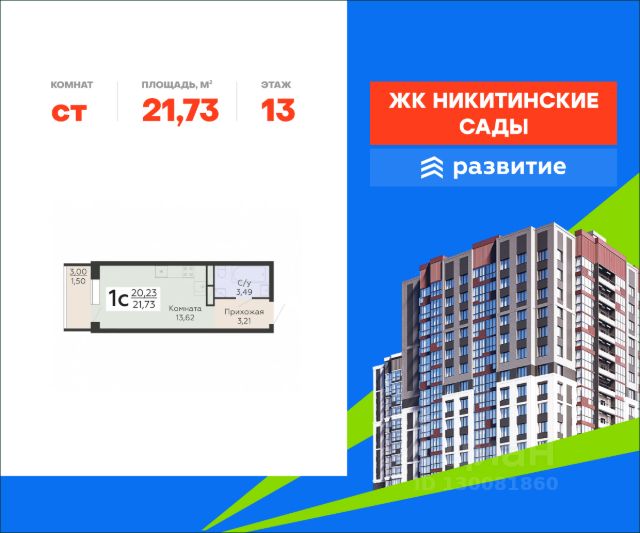 В продаже квартира площадью 30.31 кв. м с черновой отделкой. Квартира расположена на 13 этаже 20 этажного дома, в жилом комплексе комфорт-класса "Никитинские сады". "Никитинские сады" - это новое пространство, которое объединяет в себе современный внешний вид и атмосферу природного уюта. Жилой комплекс включает в себя 4 20-этажных корпуса, 1090 квартир различных планировок, множество общественных пространств для отдыха и собственную инфраструктуру. Наслаждайтесь всеми преимуществами города в окружении живописной природы! Расположение - 10 мин. пешком до остановки "улица Маршала Голикова"; - 5 мин. до бульвара Победы; - 9 мин. до ТРЦ "Арена"; - 20 мин. до ж/д станции "Березовая роща"; - 25 мин. до центра города; Благоустройство - несколько садов во дворе; - озеленение территории; - развивающие комплексы для малышей; - зоны для фотосессий; - скамьи по всему периметру; - прогулочные дорожки; - уличные тренажеры; - турники для воркаута; - мягкое покрытие на активных площадках; - оборудование из натуральных материалов; - освещение территории в вечерние часы; - просторный наземный паркинг; - кафе, магазины и бытовые сервисы на первых этажах. Окружение - природный отдых: Северный лес и лесопарк, пляж у реки Дон, озера Северск, Бычок, Круглое; - активный отдых: спорткомплекс "Арена Север", "Олимпик", футбольная школа и стадион, бассейн "Атлант", теннисный клуб "Спарта"; - культурный отдых: Музей почтового дела, КДЦ "Северный", храм Ксении Петербургской; - городской отдых: ТРЦ Сити-парк "Град" и "Московский проспект", ТРЦ "Арена", множество магазинов, кафе и студий красоты.