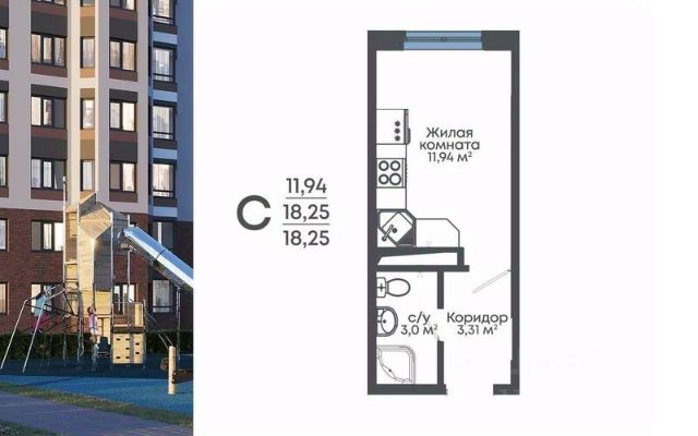 Продаётся студия в строящемся доме (Блок-секция 1), срок сдачи: IV-кв. 2025, общей площадью 18.25 кв.м., на 13 этаже. ЖК "8 Элемент" - это 3 отдельно стоящих 15-этажных домов (дома из железобетонных блоков) с современными, уютными, просторными квартирами в микрорайоне с развитой инфраструктурой
