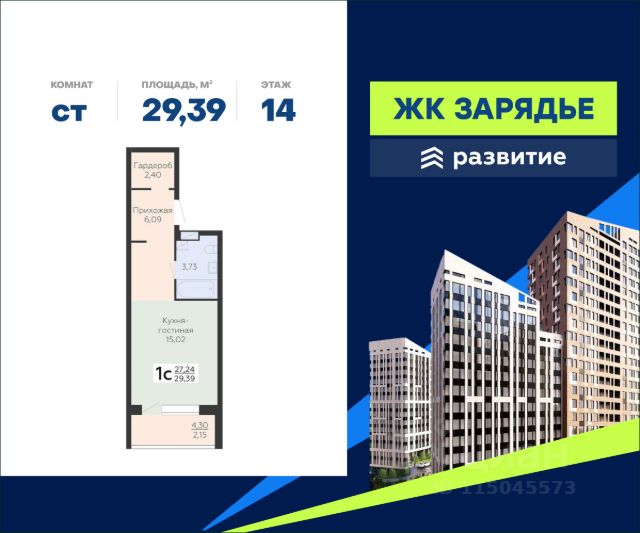 Продаётся студия в строящемся доме (Секция 7,8), срок сдачи: II-кв. 2028, общей площадью 24.19 кв.м., на 14 этаже. ЖК "КВАРТАЛ 45" будет возведён в Коминтерновском районе, в границах Московского проспекта - ул. 45 Стрелковой Дивизии - ул. Славы - переулка Ракетный, по программе развития застроенных территорий Воронежа. На месте ветхой аварийной застройки появятся высотные дома, которые станут олицетворением особого стиля и образа жизни престижного района, что безусловно станет большим вкладом в преображение внешнего облика города.