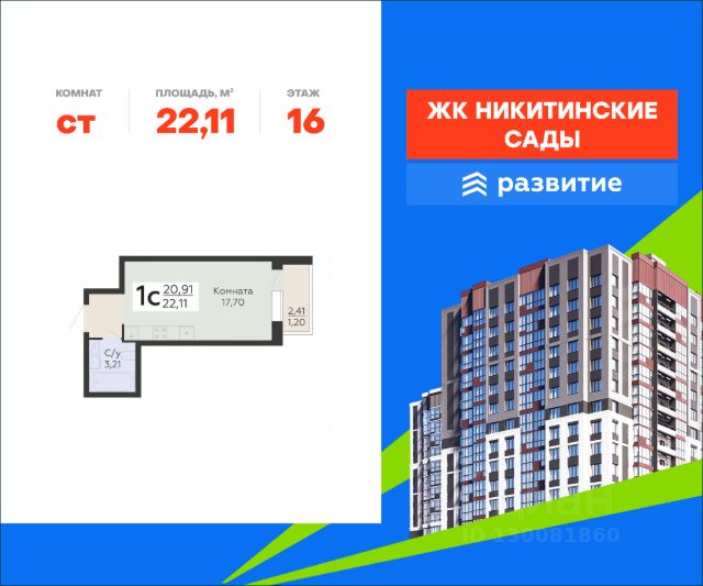 В продаже квартира площадью 20.75 кв. м с черновой отделкой. Квартира расположена на 16 этаже 18 этажного дома, в жилом комплексе комфорт-класса "Квартал 45". "Квартал 45" - это амбициозный проект будущего сердца Московского проспекта, в котором объединены лучшие градостроительные традиции, уникальная архитектура и современные технологии дизайна. Удачная локация рядом с центром, функциональные планировки, приватный парк в шаге от дома, собственный подземный паркинг на 187 машино-мест. Проект от федерального застройщика "Развитие" сочетает в себе все преимущества современного комфортного жилья. Расположение Пешком: - 3 мин. до остановки "Московский проспект"; - 5 мин. до Центрального автовокзала; - 15 мин. до уютного Коминтерновского сквера. На автомобиле: - 10 мин. до центра Воронежа; - 10 мин. до Ботанического сада; - 15 мин. до Петровской набережной. Благоустройство - приватный двор для жителей; - безопасность: нет машин, работают видеокамеры; - много зелени: деревья, кустарники, газоны; - тихие места для отдыха на свежем воздухе; - спортивный корт для командных игр; - силовые тренажеры и турники; - игровой городок для детей всех возрастов; - лужайки для пикников; - велосипедные и беговые дорожки; - длинный прогулочный бульвар; - просторный холл с авторским дизайном; - 2 лифта в каждом подъезде - грузовой и пассажирский; - удобные зоны хранения колясок и спортивного инвентаря; - кафе, продуктовые магазины, салоны красоты и другая инфраструктура на первом этаже дома. Окружение - 5 парков в пределах 10 минут: Центральный парк, Ботанический сад ВГУ, Лесопарковый участок НИИЛГиС, парк Победы, Северный лес; - спорткомплекс и стадион "Динамо", "Арена Север", Центральный стадион профсоюзов; - детская и взрослая областная больница, несколько частных клиник; - ТРЦ "Московский проспект", ТЦ "Москва", множество сетевых супермаркетов.