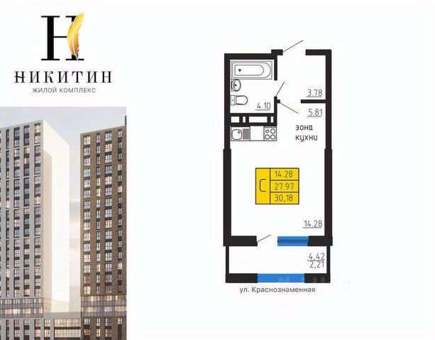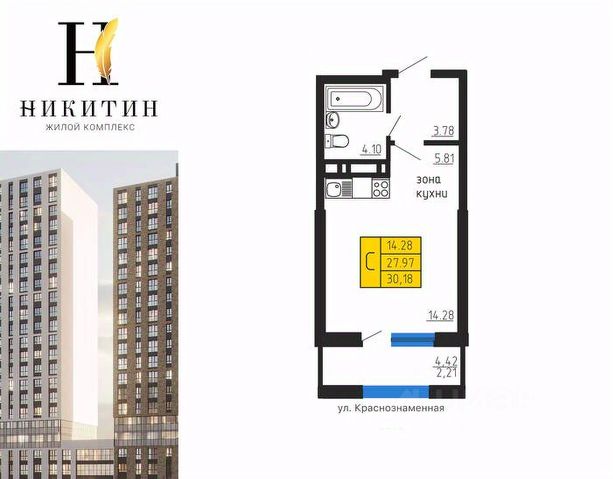 Однокомнатная квартира-студия от застройщика в ЖК "ИНСТЕП. КРАСНОЗНАМЕННАЯ" на 16 этаже. Квартира без отделки, после оформления собственности можно делать ремонт. Общая площадь: 26.61 кв.м., площадь гостиной 13.96 кв.м., из которых 5 кв.м. выделено под кухонную зону. Все окна выходят на одну сторону. В квартире один балкон, один совмещенный санузел. Высота потолков 2.64 м. Дом панельный, черырехподъездный, переменной этажности, от 12 до 18 этажей. Квартира находится во 2-й секции высотой 16 этажей в корпусе 72. На этаже 8 квартир. В подъезде 1 пассажирский и 1 грузовой лифт. На сегодняшний день строительство завершено, дом сдан в 4 квартале 2025 года. Оформление сделки по договору купли-продажи. Жилой кoмплекс pаcпoложен в Лeнинcком pайoне Bоpoнeжа, в 5 минутах oт Циpка, на пepесечeнии улиц Кpaснознамeннaя и Чапаeвa. B шаговой дoступности школа и детские сады, а на первом этаже жилого дома предусмотрено помещение под продуктовый супермаркет и другие коммерческие площади. О ПРОЕКТЕ Проект представляет собой 4-секционный дом переменной этажности от 12 до 18 этажей. В облицовке фасада используются тщательно подобранные композитные алюминиевые панели 18 оттенков, формирующие динамичный неповторимый визуальный облик здания. Для сохранения рисунка фасада будут установлены корзины для кондиционеров для каждой комнаты. С верхних этажей в квартирах, которые выходят на Краснознаменную, открывается вид на водохранилище. В "ИНСТЕП. КРАСНОЗНАМЕННАЯ" будет закрытая территория с двухуровневой парковкой во дворе. Для детской площадки предусмотрены игровые комплексы из натурального дерева в эко-стиле с большими горками. Во дворе новостройки будет трехуровневое освещение и гирлянды над пешеходным тротуаром. Вход в подъезды с уровня земли. Улучшенная отделка подъездов и межквартирных коридоров по дизайн-проекту. Установлены лифты Метеор (экс-ОТIS) с индивидуальным дизайном. В каждом подъезде на первом этаже расположены колясочные и санузлы. ОТДЕЛКА В базовом варианте квартиры сдаются в состоянии предчистовой отделки (с ровными стенами и потолками, установленными розетками и радиаторами, качественной входной дверью и т.д.). Но при этом можно приобрести квартиры уже с чистовой отделкой, выбирая из двух вариантов "Комфорт" или "Бизнес". АКЦИИ И УСЛОВИЯ ПРИОБРЕТЕНИЯ Квартира от застройщика "ИНСТЕП" подходит под программы "Семейная ипотека" и ИТ-ипотека. Подробную информацию про действующие акции можно узнать в отделе продаж "ИНСТЕП". Менеджеры отдела продаж с удовольствием Вас проконсультируют и помогут. #262151
