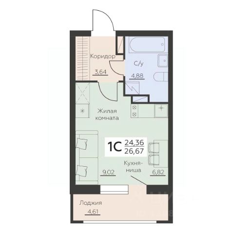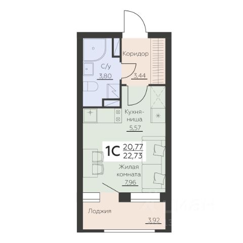 Продаётся студия в строящемся доме (улица Димитрова, 131 (Секция 2)), срок сдачи: I-кв. 2028, общей площадью 22.93 кв.м., на 2 этаже. Расположение, транспортная доступность Жилой комплекс "Каскад" строится в развитом районе Воронежа, недалеко от исторического центра. Расстояние до деловых кварталов города всего 5,5 км. На машине этот путь легко преодолеть за несколько минут. У жилого комплекса есть удобный выезд на улицу Димитрова, затем на перекрестке с круговым движением нужно выехать на улицу Брусилова, которая переходит в Чернавский мост, пролегающий через реку Воронеж, а далее по улице Степана Разина добраться до нужной точки в центральной части города. Пассажиры общественного транспорта доберутся до центра за двадцать минут (с учетом ожидания). В ста метрах от ЖК находится остановка "Волгоградская улица", от которой отправляются автобусы и маршрутное такси. Инфраструктура Левобережный район, где расположена новостройка, отличается благоприятной экологической обстановкой и развитой сетью инфраструктуры. На первых этажах здания разместятся магазины и другие коммерческие объекты. Все необходимое для комфортной жизни расположено в непосредственной близости от ЖК. В двух шагах от "Ксакада" - продуктовый рынок, сетевые супермаркеты "Пятью пять", "Пятерочка", почта, аптека "Будь здоров", парикмахерская, салон красоты "Аврора". Немногим дальше расположены пиццерия "Жар-Пицца", банкетный зал "Сказка", магазин хозяйственных товаров и бытовой химии. В шаговой доступности работают средняя общеобразовательная школа и несколько детских садиков. Вокруг много скверов и зеленых насаждений: Витебский сквер, бульвар Димитрова, сквер "Каскад", а неподалеку от него - Олимпийский парк. В нескольких минутах ходьбы находится Автомобильно-транспортный институт, на территории которого работает спортивный клуб, за десять минут можно доехать "Дворца подводного спорта" с бассейном. Надежность застройщика Возведением жилого комплекса занимается ООО "Дон-Инвест". Эта сравнительно молодая строительная организация уже успела заработать репутацию надежного, перспективного, динамично развивающегося застройщика. В проект "Каскад" ООО "Дон-Инвест" вкладывает все силы, тщательно следит за качеством и сроками выполнения строительных работ. В активе компании - успешный опыт строительства коттеджных поселков, а возведение многоэтажного жилого комплекса должно вывести организацию на принципиально новый уровень. Застройщик при поддержке властей принимает участие в городской программе расселения жильцов из ветхого и аварийного фонда, что также свидетельствует о надежности компании. Все сделки заключаются в строгом соответствии с законом. Архитектура ЖК "Каскад" - это монолитно-кирпичный дом переменной этажности (6-14 этажей), состоящий из восьми секций. Фасад будет утеплен, оштукатурен и окрашен в светлой цветовой гамме. Лифтовые зоны и помещения общего пользования будут просторными и удобными, отделанными качественными материалами. В жилом комплексе предусмотрены подземн