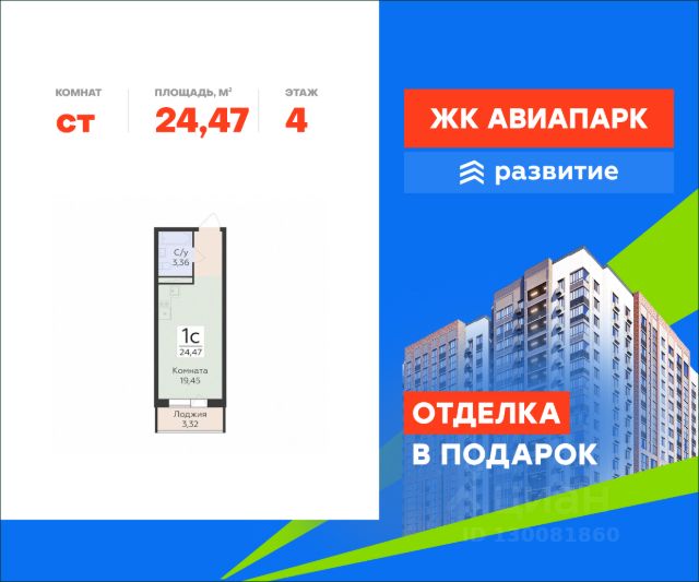 В продаже квартира площадью 29.03 кв. м с черновой отделкой. Квартира расположена на 4 этаже 18 этажного дома, в новом жилом квартале "Авиапарк". Идеальное сочетание природности и городского комфорта теперь по доступной цене! Новый жилой комплекс "Авиапарк" собрал в себе все преимущества современного жилья комфорт-класса, сочетая умиротворение загородной жизни с удобствами городской среды. Расположенный в уютном районе Воронежа с видом на местное водохранилище, комплекс имеет отличную транспортную доступность, современную архитектуру, все необходимые повседневные сервисы и большое благоустроенное пространство для жителей. "Авиапарк" - жизнь в ярком окружении! Расположение Пешком: - 10 мин. до остановки "МЧС"; - 15 мин. до Шиловского леса; - 20 мин. до поликлиники и школы. На автомобиле: - 2 мин. до трассы на Острогожской улице; - 15 мин. до Ленинского района; - 20 мин. до Петровской набережной; - 25 мин. до лесопарков "Вдохновение" и "Оптимистов". Благоустройство - уютные дворы, разделенные на зоны; - прогулочный бульвар в окружении зелени; - большое игровое пространство; - фото-зона; - городок для малышей; - спортивные конструкции для активного отдыха подростков; - беговые и велосипедные дорожки; - фитнес-зона с тренажерами; - паркинг на прилегающей территории; - несколько входных групп с авторским дизайном интерьера; - места для хранения колясок и велосипедов; - легкий доступ к инфраструктуре: магазины, кафе, салоны красоты на первых этажах домов. Окружение - леса и парки: Шиловский, Долгий и Малышевский леса, парк "Семейный"; - живописные водоемы: Шиловское озеро, река Дон, Воронежское водохранилище, Жировский затон; - 3 пляжа, зоопарк под открытым небом, торговые центры "Ласточкино", "Альянс"; - 4 спортивных учреждения, футбольный стадион, школы, детские сады, сетевые супермаркеты.