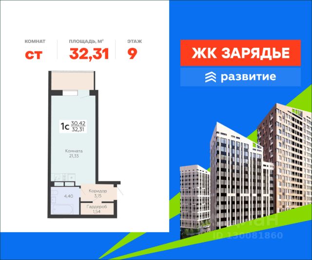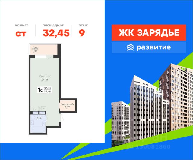 В продаже квартира площадью 30.31 кв. м с черновой отделкой. Квартира расположена на 9 этаже 20 этажного дома, в жилом комплексе комфорт-класса "Никитинские сады". "Никитинские сады" - это новое пространство, которое объединяет в себе современный внешний вид и атмосферу природного уюта. Жилой комплекс включает в себя 4 20-этажных корпуса, 1090 квартир различных планировок, множество общественных пространств для отдыха и собственную инфраструктуру. Наслаждайтесь всеми преимуществами города в окружении живописной природы! Расположение - 10 мин. пешком до остановки "улица Маршала Голикова"; - 5 мин. до бульвара Победы; - 9 мин. до ТРЦ "Арена"; - 20 мин. до ж/д станции "Березовая роща"; - 25 мин. до центра города; Благоустройство - несколько садов во дворе; - озеленение территории; - развивающие комплексы для малышей; - зоны для фотосессий; - скамьи по всему периметру; - прогулочные дорожки; - уличные тренажеры; - турники для воркаута; - мягкое покрытие на активных площадках; - оборудование из натуральных материалов; - освещение территории в вечерние часы; - просторный наземный паркинг; - кафе, магазины и бытовые сервисы на первых этажах. Окружение - природный отдых: Северный лес и лесопарк, пляж у реки Дон, озера Северск, Бычок, Круглое; - активный отдых: спорткомплекс "Арена Север", "Олимпик", футбольная школа и стадион, бассейн "Атлант", теннисный клуб "Спарта"; - культурный отдых: Музей почтового дела, КДЦ "Северный", храм Ксении Петербургской; - городской отдых: ТРЦ Сити-парк "Град" и "Московский проспект", ТРЦ "Арена", множество магазинов, кафе и студий красоты.