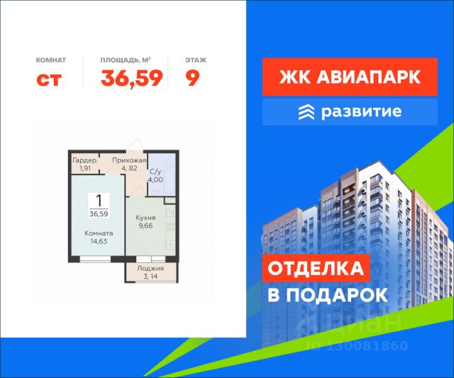В продаже квартира площадью 23.79 кв. м с черновой отделкой. Квартира расположена на 9 этаже 19 этажного дома, в новом жилом квартале "Авиапарк". Идеальное сочетание природности и городского комфорта теперь по доступной цене! Новый жилой комплекс "Авиапарк" собрал в себе все преимущества современного жилья комфорт-класса, сочетая умиротворение загородной жизни с удобствами городской среды. Расположенный в уютном районе Воронежа с видом на местное водохранилище, комплекс имеет отличную транспортную доступность, современную архитектуру, все необходимые повседневные сервисы и большое благоустроенное пространство для жителей. "Авиапарк" - жизнь в ярком окружении! Расположение Пешком: - 10 мин. до остановки "МЧС"; - 15 мин. до Шиловского леса; - 20 мин. до поликлиники и школы. На автомобиле: - 2 мин. до трассы на Острогожской улице; - 15 мин. до Ленинского района; - 20 мин. до Петровской набережной; - 25 мин. до лесопарков "Вдохновение" и "Оптимистов". Благоустройство - уютные дворы, разделенные на зоны; - прогулочный бульвар в окружении зелени; - большое игровое пространство; - фото-зона; - городок для малышей; - спортивные конструкции для активного отдыха подростков; - беговые и велосипедные дорожки; - фитнес-зона с тренажерами; - паркинг на прилегающей территории; - несколько входных групп с авторским дизайном интерьера; - места для хранения колясок и велосипедов; - легкий доступ к инфраструктуре: магазины, кафе, салоны красоты на первых этажах домов. Окружение - леса и парки: Шиловский, Долгий и Малышевский леса, парк "Семейный"; - живописные водоемы: Шиловское озеро, река Дон, Воронежское водохранилище, Жировский затон; - 3 пляжа, зоопарк под открытым небом, торговые центры "Ласточкино", "Альянс"; - 4 спортивных учреждения, футбольный стадион, школы, детские сады, сетевые супермаркеты.