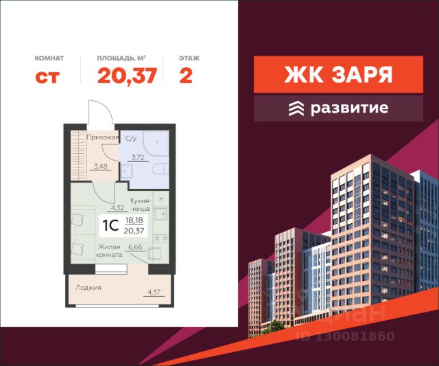 В продаже квартира площадью 20.37 кв. м с черновой отделкой. Квартира расположена на 2 этаже 14 этажного дома, в новом жилом комплексе "Заря" от федерального застройщика "Развитие". Жилой Комплекс "Заря" - это стильный, комфортный и современный проект с уникальной для Воронежа инфраструктурой. Между зданиями уютно расположится приватный благоустроенный двор-патио - мини оазис с пешеходными дорожками. Все это дополняет отличная транспортная доступность, неординарная архитектура, множество эксклюзивных форматов жилья, собственный подземный паркинг на 240 мест. "Заря" - новый стандарт комфортной городской жизни. Расположение Пешком: - 5 минут до ТЦ "Европа"; - 6 минут до остановки "Улица Брусилова"; - 7 минут до ул. Ильича; - 10 мин. до Ленинского проспекта. На машине: - 3 мин. до Чернавского моста; - 5 мин. до СК "Чернавская дамба" - 6 мин. до парка "Алые паруса"; - 7-10 минут до центра города и Петровской набережной. Благоустройство - стильное лобби с авторским дизайном; - теплая зона ожидания; - вместительные колясочные и велосипедные помещения; - лифты с доступом в паркинг; - кладовые на каждом этаже; - приватный двор-патио; - камерные лаунж-зоны в окружении зелени; - большое разнообразие растений: клены, ивы, можжевельник, китайская сирень и другие; - умное зонирование: тихие и шумные площадки удалены друг от друга; - беговые, прогулочные, велосипедные дорожки; - площадки для малышей и подростков; - спортивные корты и тренажеры; - общественный променад с ритейлом; - собственный деловой центр; - кафе, творческие студии, спортивные секции и магазины прямо на первом этаже дома. Окружение - места для прогулок: парк Патриотов, парк и пляж "Алые Паруса", сквер Ильича, бульвар "Ленинский проспект" у Воронежского водохранилища; - активный отдых: яхт-клуб, Центральный стадион, спорткомплекс Platinum Arena, фитнес-центр "Олимп" с бассейном; - все нужное рядом: ТЦ "Европа", школы и детские сады, поликлиника, центр педиатрии; - близость к центру: Центральный парк, Воронежский концертный зал, здание Управления ЮВЖД, Благовещенский собор.