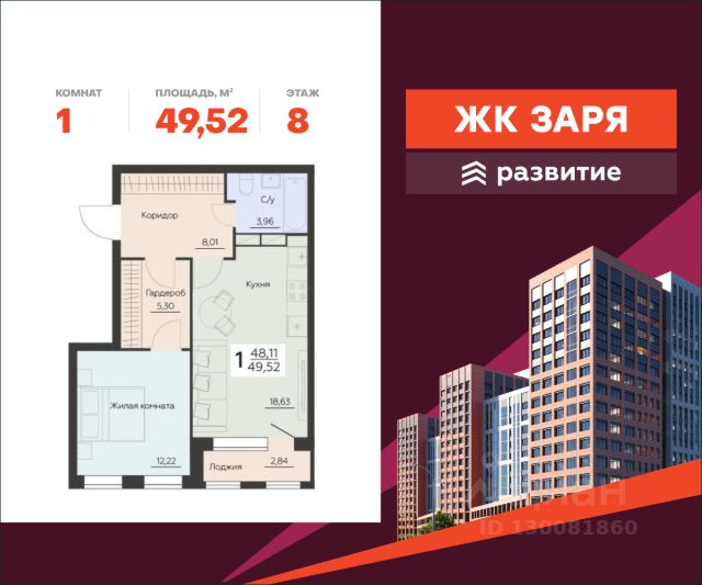 Продаётся студия в строящемся доме (улица Димитрова, 131 (Секция 2)), срок сдачи: I-кв. 2028, общей площадью 22.93 кв.м., на 2 этаже. Расположение, транспортная доступность