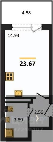 Студия: 23,06 кв.м., 3 этаж в комплексе Дом у Ротонды, 1 очередь, корп.1, сдача: 4кв. , этажей: 28, адрес Воронеж г., Транспортная ул., д. 58, Застройщик: ГК ГРАД.