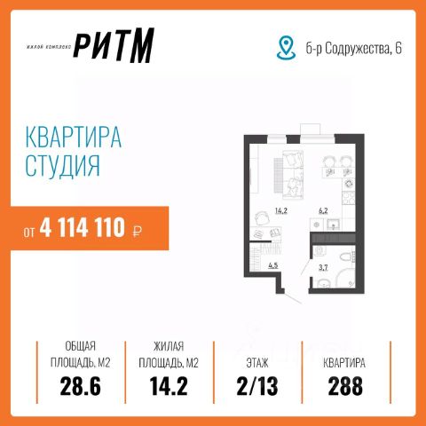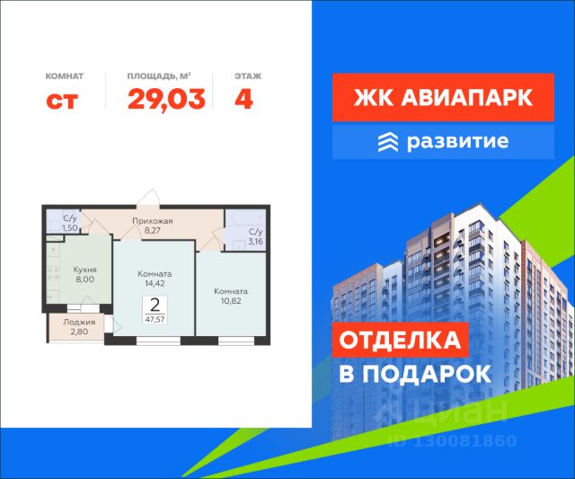 В продаже квартира площадью 29.03 кв. м с черновой отделкой. Квартира расположена на 4 этаже 18 этажного дома, в новом жилом квартале "Авиапарк". Идеальное сочетание природности и городского комфорта теперь по доступной цене! Новый жилой комплекс "Авиапарк" собрал в себе все преимущества современного жилья комфорт-класса, сочетая умиротворение загородной жизни с удобствами городской среды. Расположенный в уютном районе Воронежа с видом на местное водохранилище, комплекс имеет отличную транспортную доступность, современную архитектуру, все необходимые повседневные сервисы и большое благоустроенное пространство для жителей. "Авиапарк" - жизнь в ярком окружении! Расположение Пешком: - 10 мин. до остановки "МЧС"; - 15 мин. до Шиловского леса; - 20 мин. до поликлиники и школы. На автомобиле: - 2 мин. до трассы на Острогожской улице; - 15 мин. до Ленинского района; - 20 мин. до Петровской набережной; - 25 мин. до лесопарков "Вдохновение" и "Оптимистов". Благоустройство - уютные дворы, разделенные на зоны; - прогулочный бульвар в окружении зелени; - большое игровое пространство; - фото-зона; - городок для малышей; - спортивные конструкции для активного отдыха подростков; - беговые и велосипедные дорожки; - фитнес-зона с тренажерами; - паркинг на прилегающей территории; - несколько входных групп с авторским дизайном интерьера; - места для хранения колясок и велосипедов; - легкий доступ к инфраструктуре: магазины, кафе, салоны красоты на первых этажах домов. Окружение - леса и парки: Шиловский, Долгий и Малышевский леса, парк "Семейный"; - живописные водоемы: Шиловское озеро, река Дон, Воронежское водохранилище, Жировский затон; - 3 пляжа, зоопарк под открытым небом, торговые центры "Ласточкино", "Альянс"; - 4 спортивных учреждения, футбольный стадион, школы, детские сады, сетевые супермаркеты. Квартира-студия в новостройке без отделки в Воронеже.