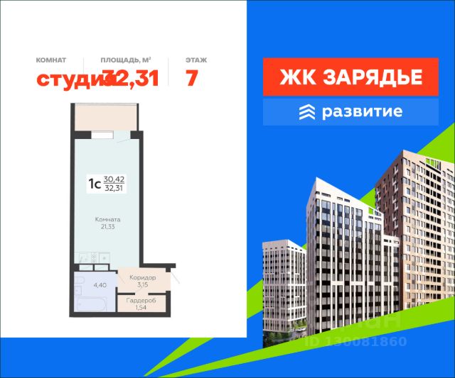 В продаже квартира площадью 30.64 кв. м с черновой отделкой. Квартира расположена на 2 этаже 20 этажного дома, в жилом комплексе комфорт-класса "Никитинские сады". "Никитинские сады" - это новое пространство, которое объединяет в себе современный внешний вид и атмосферу природного уюта. Жилой комплекс включает в себя 4 20-этажных корпуса, 1090 квартир различных планировок, множество общественных пространств для отдыха и собственную инфраструктуру. Наслаждайтесь всеми преимуществами города в окружении живописной природы! Расположение - 10 мин. пешком до остановки "улица Маршала Голикова"; - 5 мин. до бульвара Победы; - 9 мин. до ТРЦ "Арена"; - 20 мин. до ж/д станции "Березовая роща"; - 25 мин. до центра города; Благоустройство - несколько садов во дворе; - озеленение территории; - развивающие комплексы для малышей; - зоны для фотосессий; - скамьи по всему периметру; - прогулочные дорожки; - уличные тренажеры; - турники для воркаута; - мягкое покрытие на активных площадках; - оборудование из натуральных материалов; - освещение территории в вечерние часы; - просторный наземный паркинг; - кафе, магазины и бытовые сервисы на первых этажах. Окружение - природный отдых: Северный лес и лесопарк, пляж у реки Дон, озера Северск, Бычок, Круглое; - активный отдых: спорткомплекс "Арена Север", "Олимпик", футбольная школа и стадион, бассейн "Атлант", теннисный клуб "Спарта"; - культурный отдых: Музей почтового дела, КДЦ "Северный", храм Ксении Петербургской; - городской отдых: ТРЦ Сити-парк "Град" и "Московский проспект", ТРЦ "Арена", множество магазинов, кафе и студий красоты. Купить квартиру-студию с отделкой от застройщика в районе Коминтерновский в городе Воронеж.