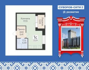 Жилой комплекс "Суворов Сити II" — продолжение современного масштабного проекта "Суворов Сити", находящегося в спальном районе в четырех километрах от центра города. Проект сочетает удачное расположение с удобными планировками, актуальным дизайном и приватным двором. Расположение Пешком: — 510 минут Автобусные остановки; — 12 минут Школа 50; — 15 минут Детский сад 174; — 20 минут ТРЦ "Армада". На автомобиле: — 1 минута улица Матросова; — 5 минут улица Ворошилова, проспект Патриотов; — 10 минут Вогрэсовский мост; — 15 минут проспект Революции, Чернавский мост, вокзал "Воронеж-1"; — 30 минут выезд на М-4; — 50 минут аэропорт "Воронеж". Лобби — Колясочная; — Лапомойка для питомцев; — Входные группы с окнами в пол; — Лифты с возможностью спуска в подземный паркинг на 465 машиномест. Благоустройство — Двор закрыт от прохожих и транспорта; — Доступ на внутреннюю территорию, в парадные и в паркинг по ключам; — Круглосуточное видеонаблюдение; — Собственная инфраструктура (важные магазины и сервисы) на первом этаже здания; — Детский сад во дворе ЖК; — Пешеходная аллея; — Места для отдыха со скамейками и перголами; — Детские игровые и спортивные площадки; — Навигационная подсветка в темное время суток. Окружение — Спокойный спальный район; — Близко магазины, кафе, медклиник, салонов красоты, аптек; — В шаговой доступности скверы, сады, ТРЦ, стадион. О застройщике Федеральный застройщик ГК "Развитие" лидирует по количеству возводимых объектов и входит в ТОП-20 девелоперов России. За 10 лет на рынке компания ввела в эксплуатацию свыше 700 тыс. кв. м жилья, еще столько же находится в стадии строительства. В портфеле — 30 завершенных проектов и более десятка тысяч заселенных квартир. Девелопер сотрудничает с ведущими отраслевыми партнерами, включая "Северсталь" и "Технониколь". "Развитие" специализируется на строительстве жилых комплексов и микрорайонов, развитии инфраструктуры и создании комфортной городской среды. Девелопер реализует проекты в Воронеже, Москве и области, Ленинградской области, Крыму, Орле и Самаре. Основные форматы — ЖК комфорт- и бизнес-класса, апарт-отели, прибрежные премиальные комплексы и жилые кластеры с коммерцией, парковками и благоустроенными дворами. Квартира-студия с отделкой от застройщика в районе Ленинский в городе Воронеж.