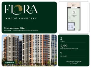 Жилой комплекс "Бунин" — проект с удивительной концепцией и необыкновенной архитектурой, невероятно комфортным и функциональным пространством для жизни. Авторы проекта — голландская архитектурная компания "KCAP Architects&Planners" в сотрудничестве с архитектурным бюро "А.Лен" (г. Санкт-Петербург). Жилой комплекс "Бунин" расположен на въезде в Воронеж со стороны Москвы, вдоль одной из главных городских магистралей - Московского проспекта. Оригинальная архитектурная композиция стилизована под стопки книг — вертикальные и горизонтальные. Книжные полки, обложки книг, страницы — все эти элементы узнаются в форме и отделке зданий. Технология строительства — монолитная. Входные группы подъездов, расположенные со стороны двора, выполнены в уровень земли, без ступеней и пандусов. В каждом подъезде оборудованы колясочные. Надежные и просторные лифты (в каждом подъезде по 2-3 лифта), в которые легко поместится велосипед и детская коляска. Входные двери парадных с витражным отделением, большие окна в местах общего пользования, а также датчики движения делают общее пространство светлым, безопасным и экономичным. Будут оборудованы места для службы консьержей. Пространство с благоустройством разделено на две зоны. Со стороны Московского проспекта будет организован сосновый сквер с прогулочными аллеями и общественными пространствами с зонами отдыха. С обратной стороны, рядом с яблоневым садом, будет находиться основное дворовое пространство, в которое вписаны детские и спортивные площадки, уличные тренажеры, workout и стилизованные зоны отдыха. Двор будет закрыт от машин. Кофейни, домашние рестораны, магазины, салоны красоты, расположенные на первых этажах коммерческих помещений, сделают жизнь удобной, практичной и чуточку камерной. Неподалеку от дома будет организован большой спортивный городок — с беговыми и велодорожками, площадками для игр в волейбол, стритбол, мини-футбол, настольный теннис и набирающую популярность в России игру в сквош. Двухуровневый подземный паркинг ЖК вмещает более 800 машин. В паркинге будут организованы круглосуточная охрана и видеонаблюдение. Оборудован лифт с жилых этажей, системой вентиляции и пожаротушения. Через дорогу от жилого комплекса, на территории площадью почти 35 гектаров, администрацией города создается полноценный социальный узел, который включает в себя общеобразовательную школу на 2860 мест и детский сад на 600. Рядом будут построены детская школа искусств с библиотекой имени Бунина, поликлиника на 1100 посещений в смену с подстанцией скорой медицинской помощи. А также в проекте предполагается 3 спортивных комплекса для занятий различными видами спорта. Например, такими как плавание, единоборства, настольный теннис, фигурное катание и другие игровые и индивидуальные виды спорта. Продается квартира-студия в новостройке с отделкой в Воронежской области.